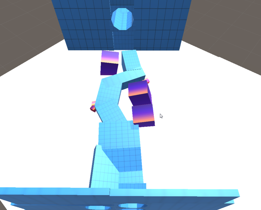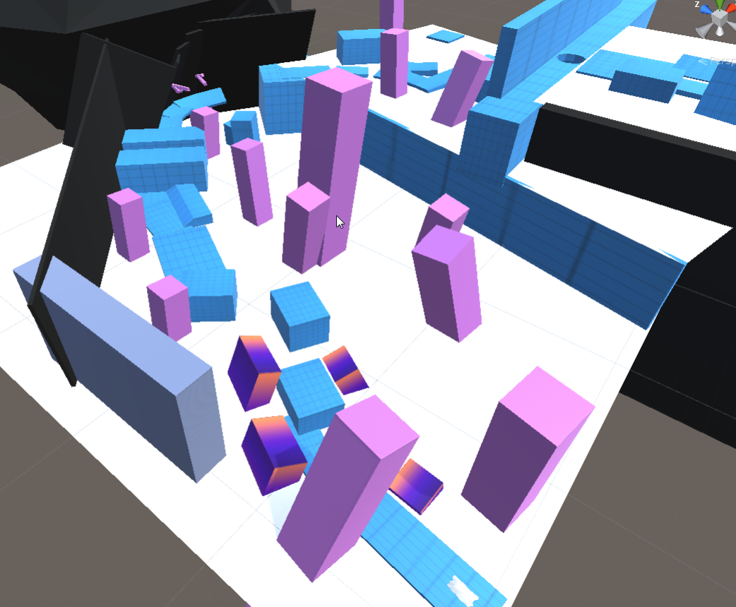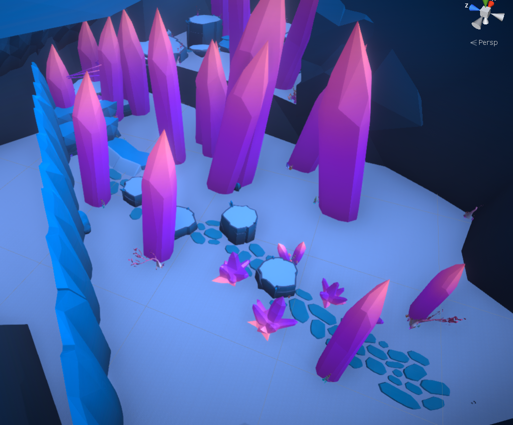 The initial blockout was made using Unity’s 3d primitives which I later replaced with modular assets provided by the art team, who also did the decorating and lighting for the scene. Using verticality and small holes for the player to jump through, I was able to put occlusion culling to good use and keep performance high.