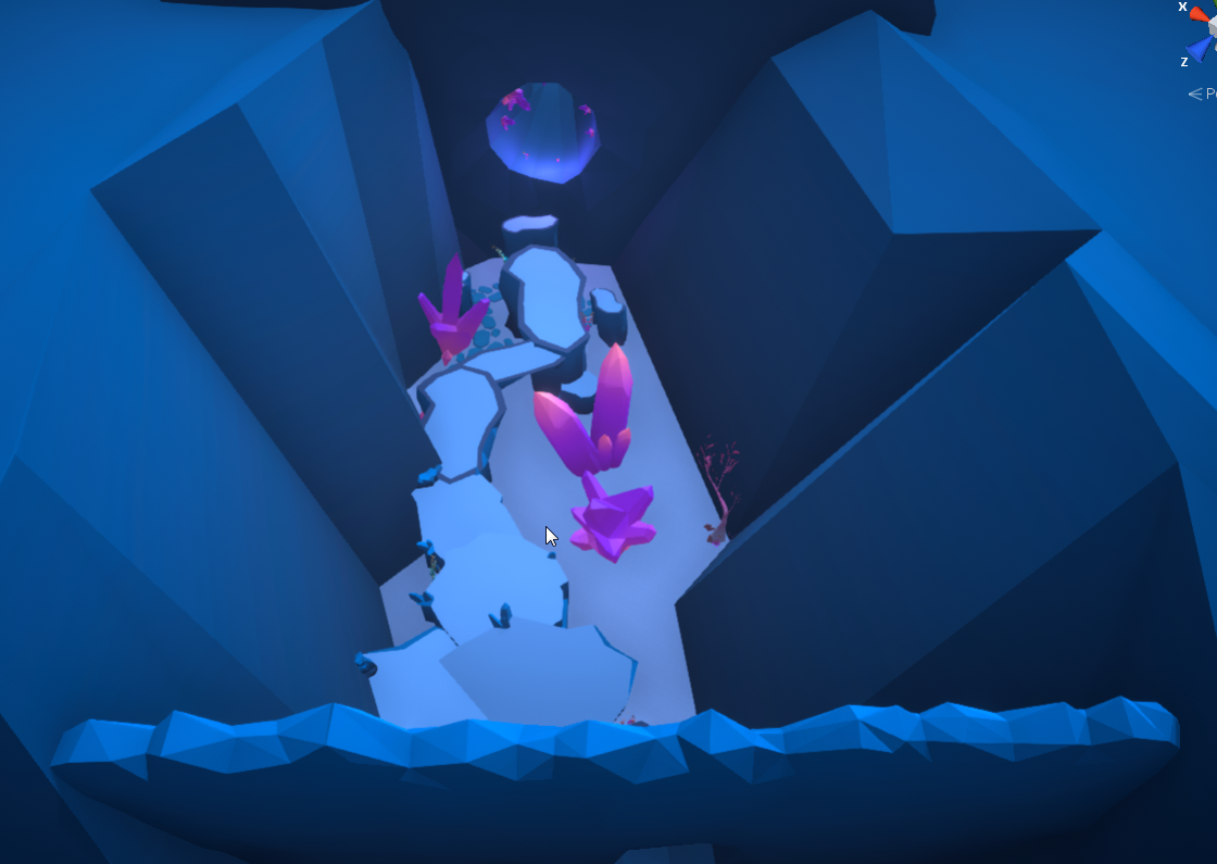 I’ve created most of the third level in Lenli, working on the initial concept, blockout, tweaking, testing and optimisation. The way Lenli bounces around the environment makes even the slightest ledge or slope have a large impact on the player’s perception and routing. Additionally, the player is granted the launching ability at the start of this level, allowing me to create a level which allows for a lot of vertical movement and the crossing of large horizontal gaps.