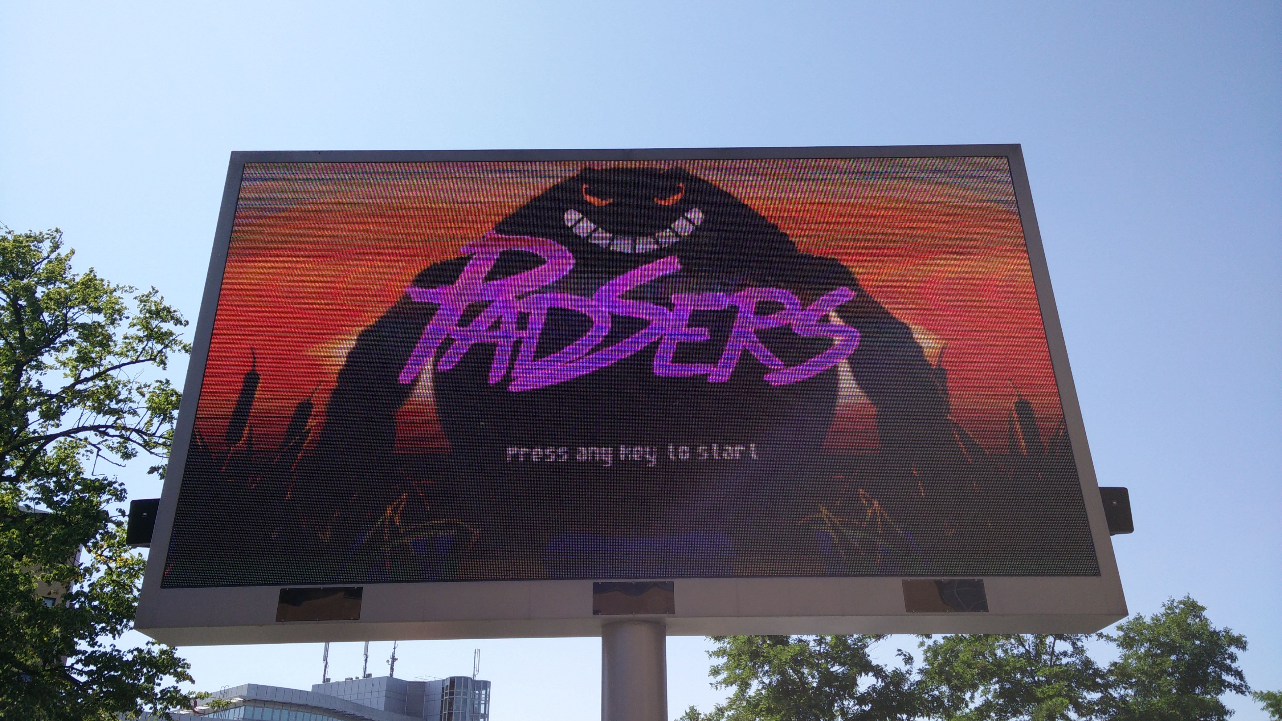 Padsers is a 3d first-person fighting game played using a custom 1x1 meter large Commodore 64 controller. Using shoves, sidesteps and parries players must outspeed and outsmart Padro the toad to push him off of the arena 3 times, Padro growing angrier and stronger with each passing round.